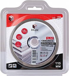 Алмазный отрезной круг Diam Master Line 1A1R Корона Ceramics Slim 115 мм (Диам Мастер Лайн 1А1Р Корона Керамикс Слим 115 мм) – ультратонкий алмазный диск для прямолинейной резки керамогранита, керамики, глазурованной плитки.