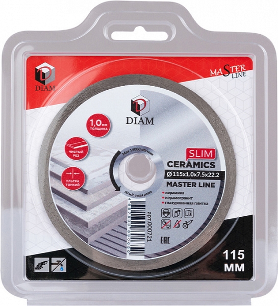 Цена и технические характеристики алмазного отрезного круга Diam Master Line 1A1R Корона Ceramics Slim 115 мм: