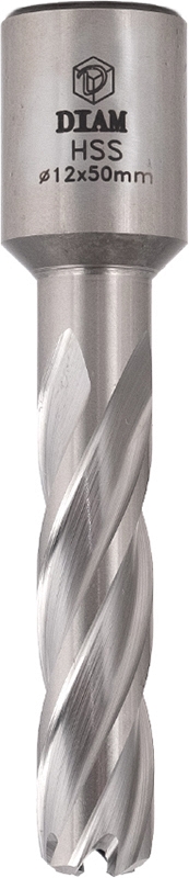 Корончатое сверло по металлу Diam Extra Line HSS 12×50 мм (Диам Экстра Лайн ХСС 12×50 mm) предназначено для сверления отверстий Ø 12 мм, глубиной до 50 мм, в углеродистых и легированных сталях, алюминиевых сплавах на магнитных сверлильных станках.