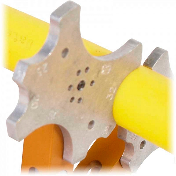 - Диаметр зажимаемой трубы определяется положением 4-х зажимов, каждый из которых поворачивается вокруг оси и фиксируется в одном из 5-ти положений