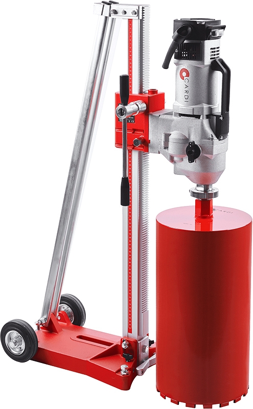 Установка алмазного бурения Cardi 250 (Карди 250) предназначена для алмазного сверления отверстий Ø 50 – 300 мм (2" – 12") алмазными сверлильными коронками в бетоне, железобетоне с любой степенью армированности, а также Ø 30 – 350 мм (1 1/4" – 14") в асфальте, кирпичной и камненной кладке и т.д. с подачей воды.